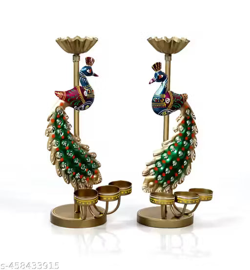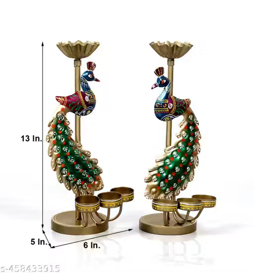 Name : Handicraft Mor T-Light Candle Holder Showpiece Home Decoration Diwali Gift ( Pack-2 )