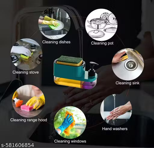 Name : Sanura Plastic 3 in 1 Soap Pump Dispenser Dish Soap Liquid Dispenser Sponge Holder Dish Soap Pump Dispenser for Kitchen Sink Countertop Kitchen Bathroom (Multi-Color)